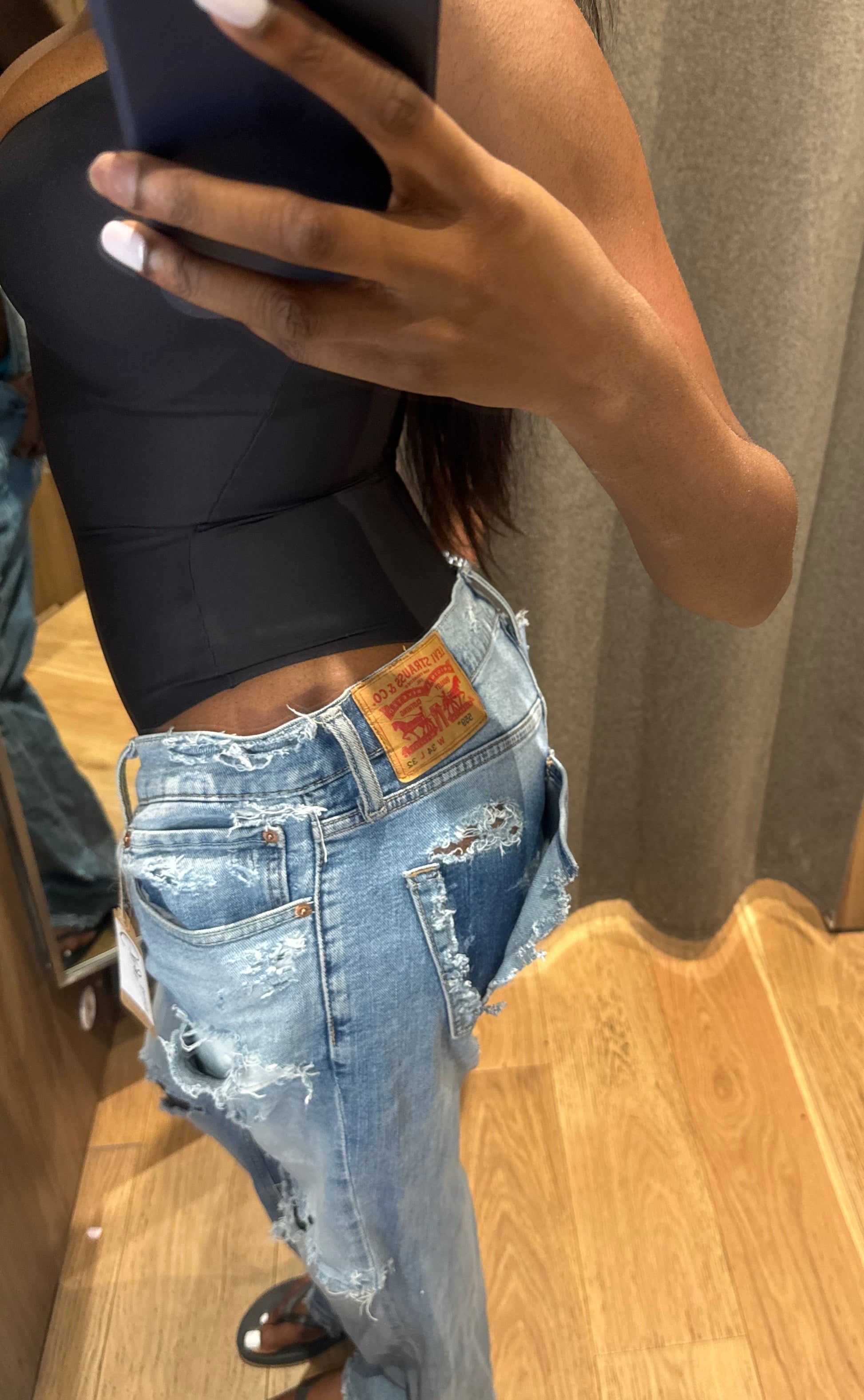 Each pair is made from authentic heavyweight vintage Levi’s denim, carefully reworked by hand. Natural variations in fading, texture, and distressing make every piece one of a kind.